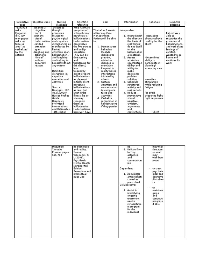 Mixed schizophrenic symptoms (or other types), along with alterations of thought, affect and behavior. Learn about notes psych nursing schizophrenia with free interactive flashcards. Nursing diagnosis for schizophrenia : Schizophrenia is a psychiatric disorder that causes the individual to have altered thoughts, moods perceptions and behavior. This care plan is designed for patients with schizophrenia with a nursing diagnosis of social isolation may be related to disturbed thought processes that result in mistrust of others/delusional thinking;
